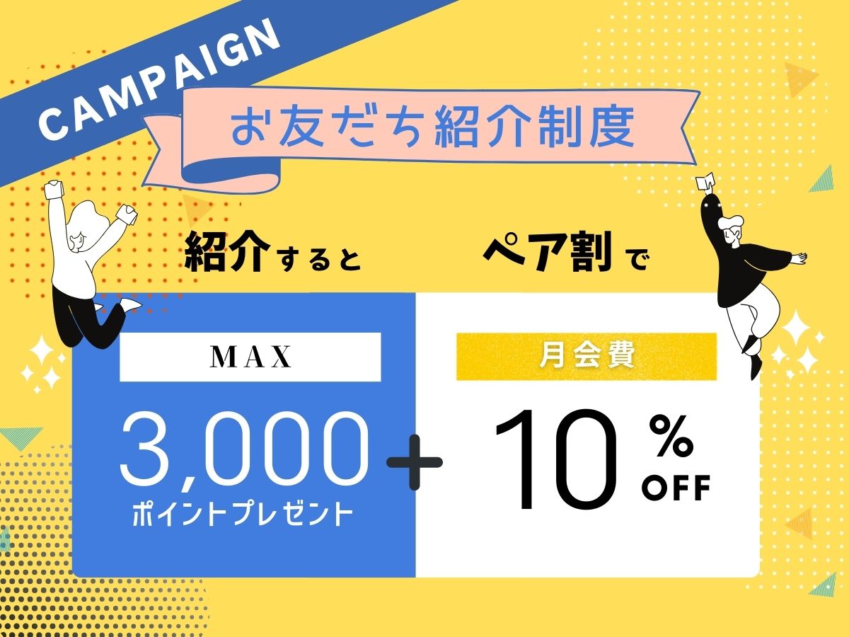 お友達やご家族のご入会で、あなたに紹介ポイントをプレゼント!