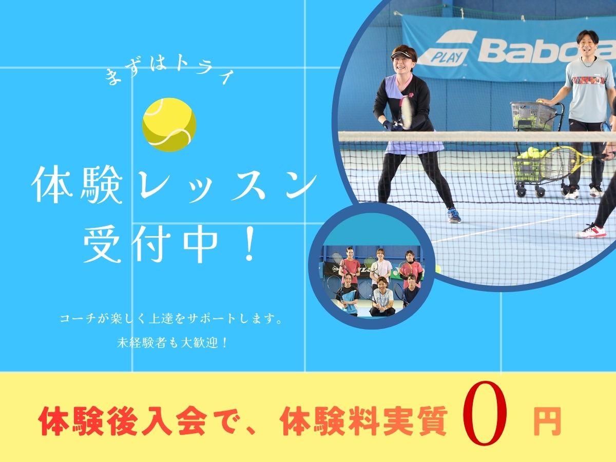 | 入会特典 | ①ラケット・テニスシューズ等のテニスグッズ(1点のみ)3割引で購入いただけます♪ ②フィットネスジム無料チケットプレゼント! (2回分施設利用券 3,000円相当) |