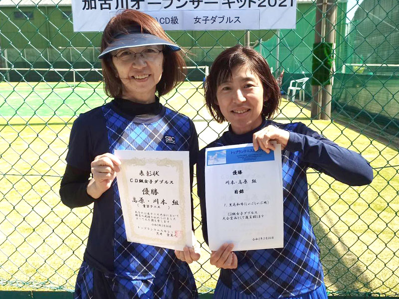 CD級女子ダブルス in 石守校 2021年3月26日(金)、トップランテニスカレッジ石守校にて「CD級女子ダブルス大会」が開催されました。結果は以下の通りです。皆様、お疲れ様でした。 -