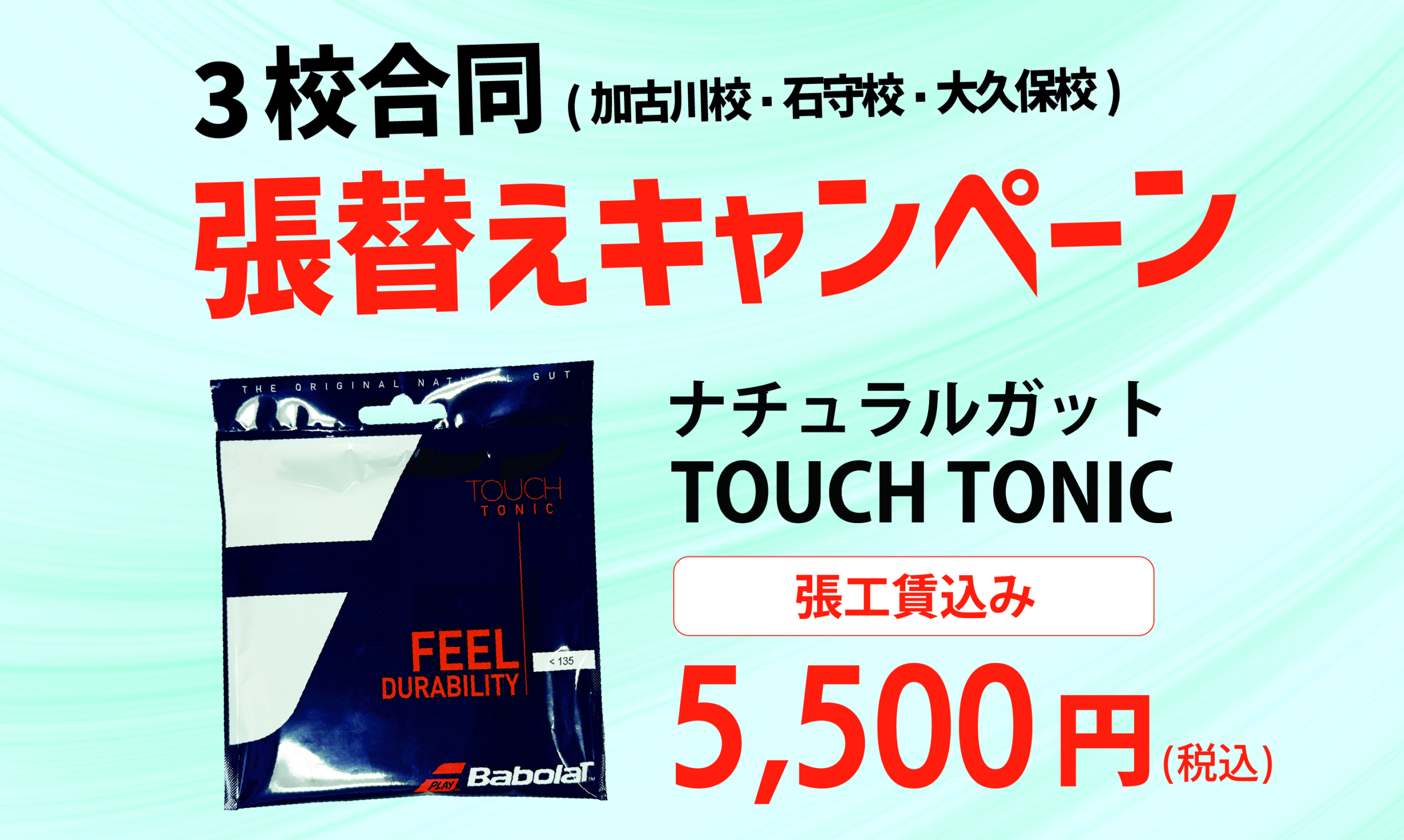 バボラのナチュラルガット「TOUCH TONIC」の張替えキャンペーンを開催します。