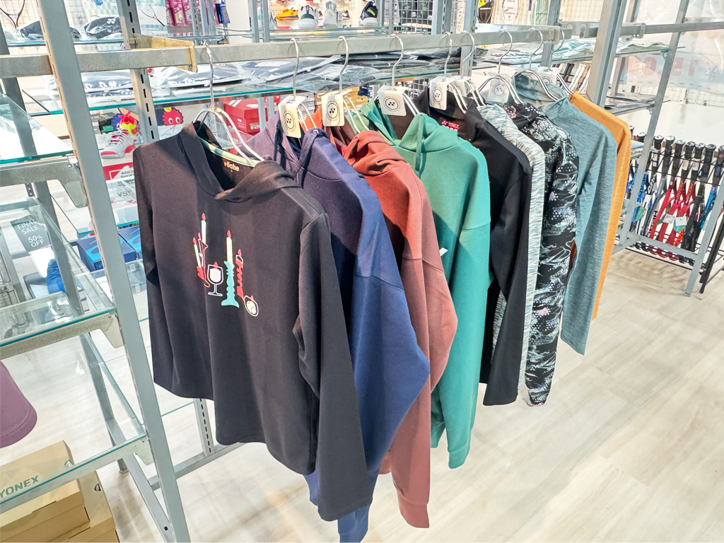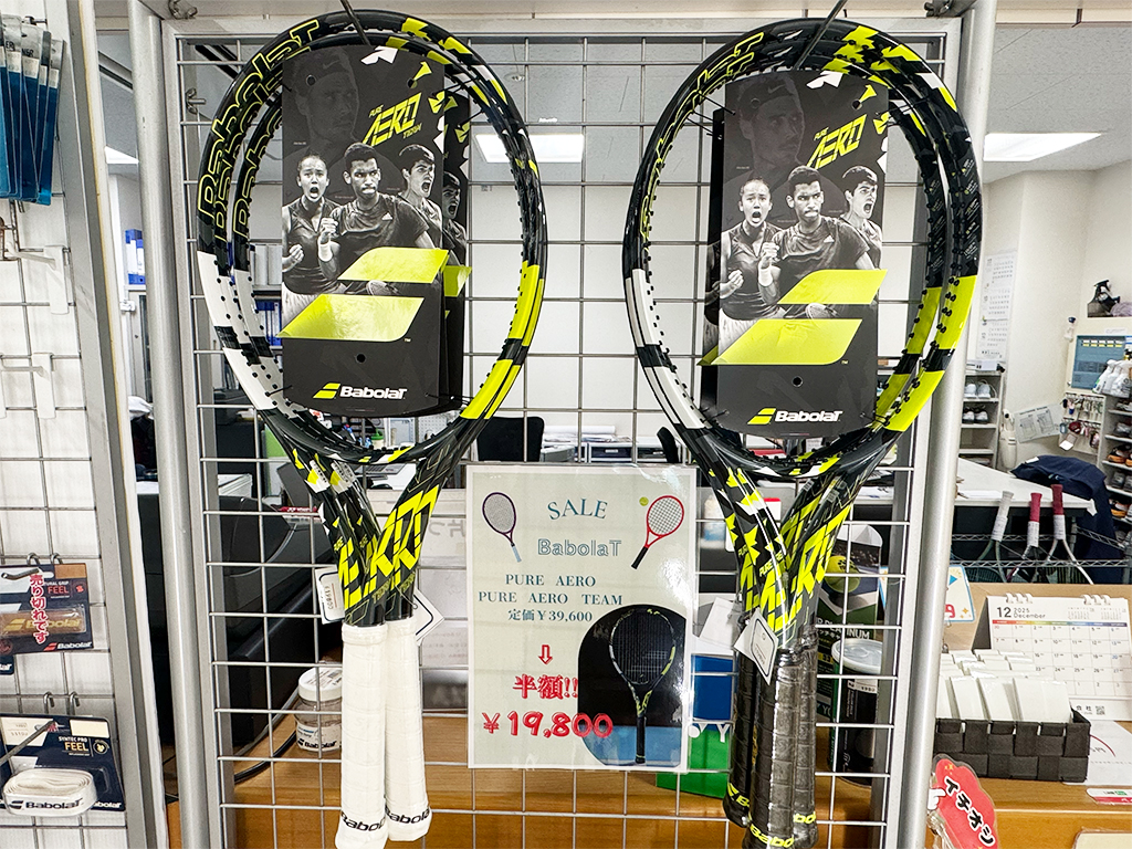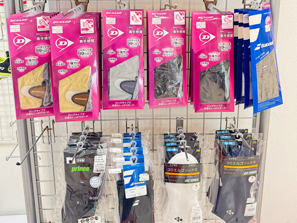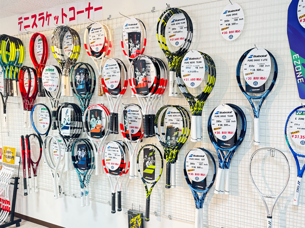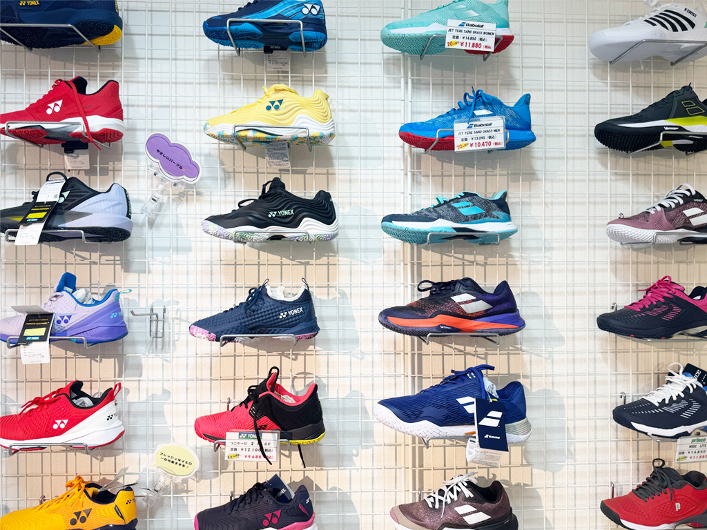 欲しかったラケットやシューズ、サングラスなど定価より30%off!この機会に新しくラケットやシューズなど、新調してみてはいかがでしょうか。コーチが常駐していますので、ぜひお声がけください!