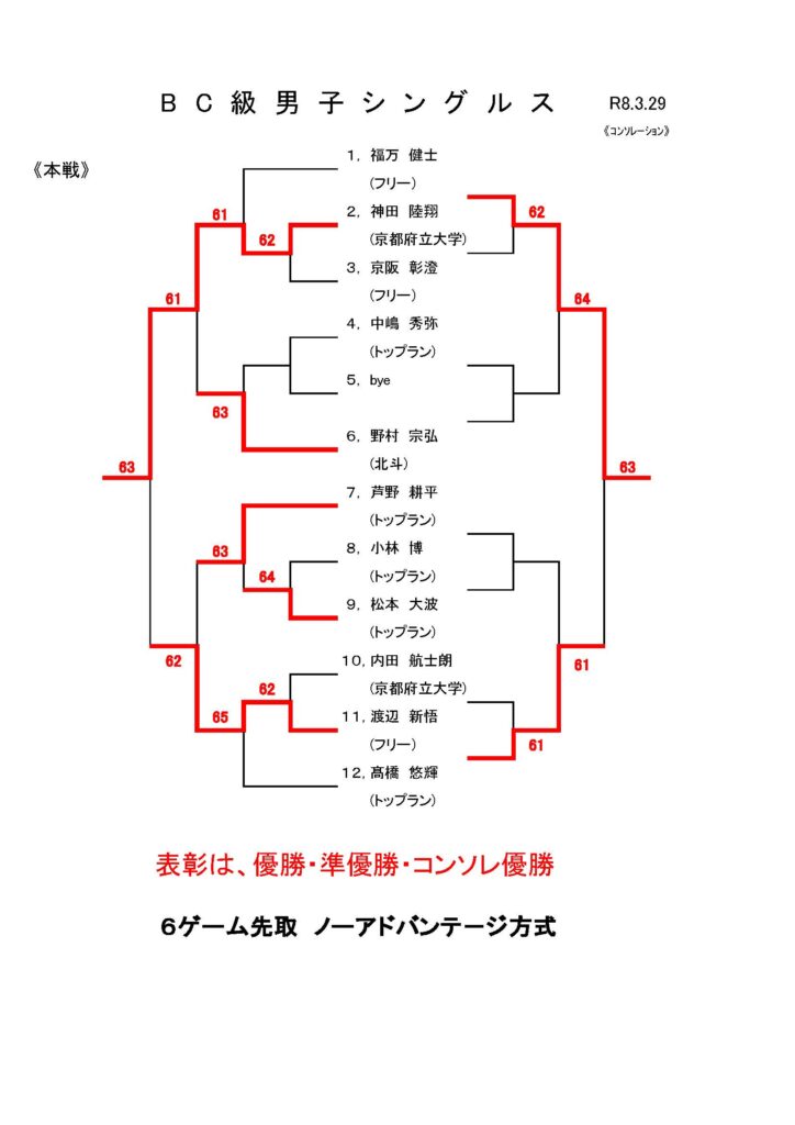 【加古川オープンサーキット】 3/29 BC級男子シングルス大会結果