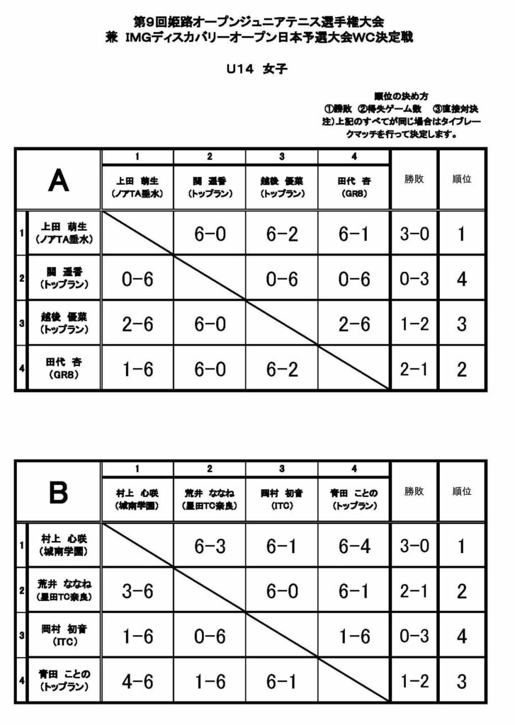 第9回姫路オープンジュニアテニス選手権大会(女子の部)
