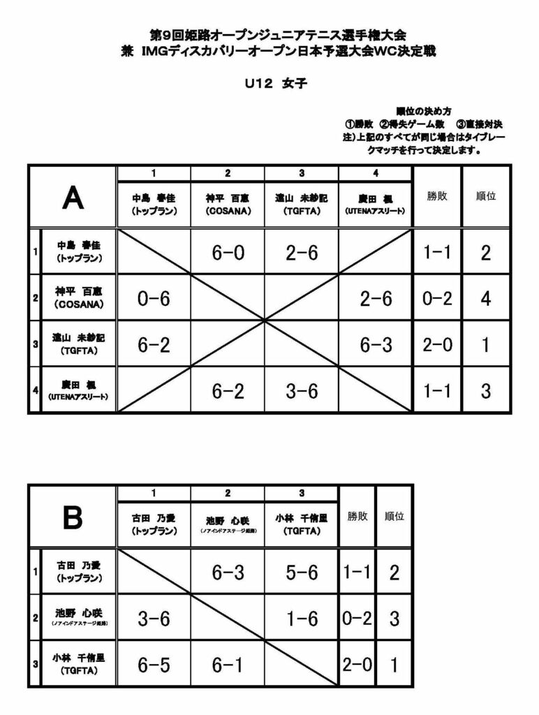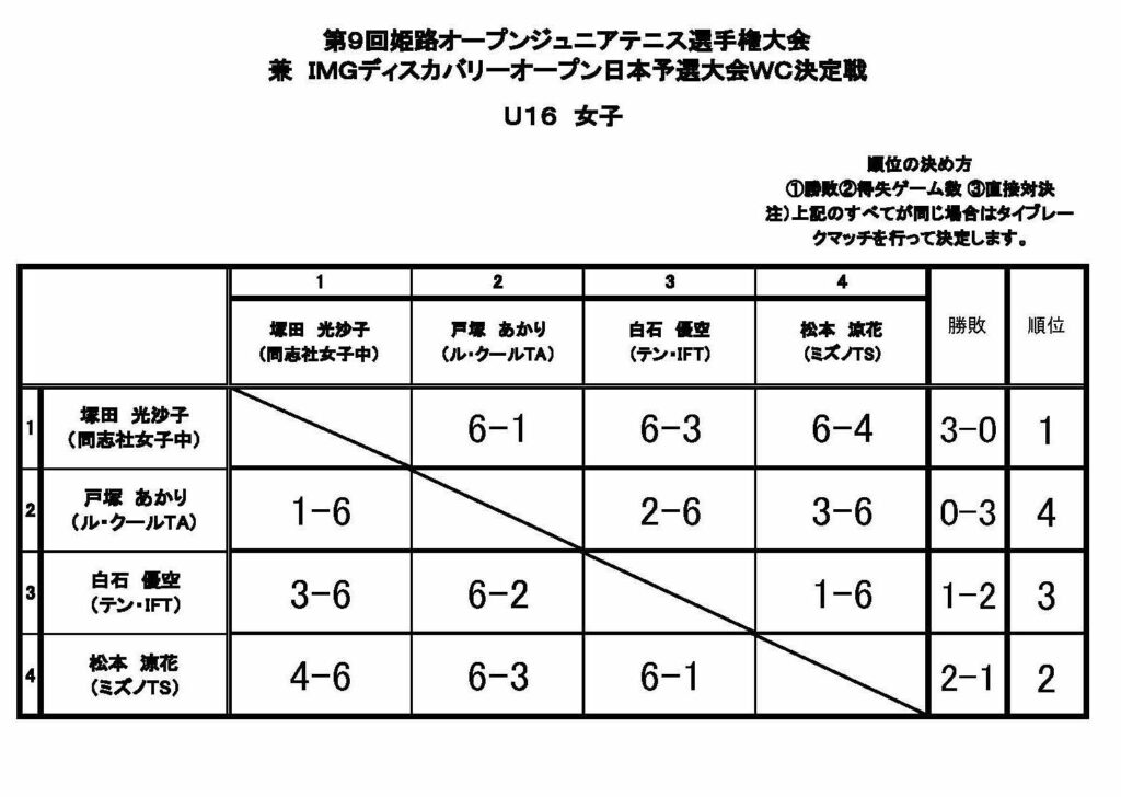 1/10【第9回姫路書オープンジュニアテニス選手権(女子の部)】 大会結果