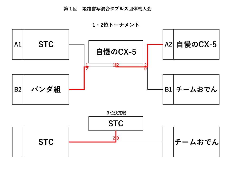 目次姫路書写混合ダブルス団体戦 2026年3月20日(金)、書写校にて、「姫路書写混合ダブルス団体戦」を開催しました。 スクロールできます 優勝 自慢のCX-5 準優勝 パンダ組 3位 STC 大会結果 【加古川オープンサーキット】 2/23 CD級男子シングルス大会結果 カテゴリー イベント お知らせ ショップ スタッフ紹介 テニス上達の秘訣 トレセン 今月のトップラン 大会結果 関連記事 【加古川オープンサーキット】 2/23 CD級男子シングルス大会結果 2026年3月6日 【加古川オープンサーキット】 2/20 CD級女子ダブルス大会結果 2026年3月6日 2/14【第3回姫路書写メンズシングルストーナメント】 大会結果 2026年2月16日 【加古川オープンサーキット】 1/25 CD級男子シングルス大会結果 2026年2月16日 【加古川オープンサーキット】 1/12 オープン男子ダブルス大会結果 2026年2月16日 【加古川オープンサーキット】 2/11 CD男子シングルス大会結果 2026年2月13日 1/10【第9回姫路書オープンジュニアテニス選手権(女子の部)】 大会結果 2026年1月14日 【加古川オープンサーキット】 1/10 CD男子シングルス大会結果 2026年1月14日